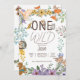 Två vilder! En beundransvärd, handmålad kallelse till land, rustiska gröna skogsdjur på 1:a födelsedag med en söt björn, hjort, mårkoon, kanin, hedgehog och räv i neutralt skogsområden färg, i orange, grönt och brunt färger. med grönt löv och träd grenar. Perfekt gender-neutralt baby andra födelsedagsinbjudan för alla säsonger!