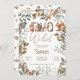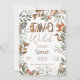 Två vilder! Ett vackert och sött handmålat vattenfärgsdjur i land-rustik-gröna skogar på 2:a födelsedag med söt björn, hjort, tvättbjörn, kanin, hedgehog och räv i neutralt skogsområden färg, i orange, grönt, brunt färger. med grönt löv och träd grenar. Perfekt könsmässigt neutral andra baby-födelsedagsinbjudan för alla säsonger!