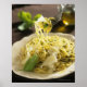 Spaghetti med basilika och parmesan på platta, poster