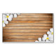 Vitplumeria blommar på det lantliga wood golv, elegant brunnsort, flår omsorg, massageterapi, eller salongen ställer in. Skräddarsy för att tillfoga text för att passa ditt behov.