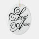En prydnad med namn "spanar ariaen" som är skriftlig på den