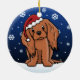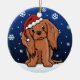 Prydnad för jul för Spaniel för kung Charles för gullig ruby som stolt dras i kawaiitecknad! Denna förtjusande hund aveln ha på sig en röd Santa hatt, och snöflingor faller lite varstans honom. Absolut förtjusande, perfekt för hund älskare julaftonträd! Röd lagfärg.