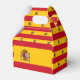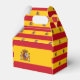 Den spanska flagga är ett färgtriband för vågrät med ett emblem i mitten. Det använda färgen i flagga är blått, grönt, rött, gult, vitt, svart. Andelen spanska flagga är 2:3. Spaniens Flagga antogs 1981. Den första användan i den nuvarande flagga var 1785. Den sista ändringen av den nuvarande spanska flagga gjordes 1981.