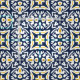 Inspinerad av de traditionella azulejoplattorna i Spanien och Portugal har denna intrikt mönstrade väv en geometrisk utformning i den sommarblå och soliga gyllene gulten på vit bakgrund. Perfekt för Medelhavets stil-torka, strandhus och stil vid kusten.