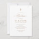 Budget Elegant Gold Cross Calligraphy Baptism Invitation features a delicate modern cross, paired with modern type and beautiful calligraphy script.