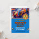 Fira ditt barns speciella dag med denna dynamiska racingbil-design! En livfull racingbil med rutor flaggor i djärka orange och blå nyanser skapar en spännande stämning för en födelsedagsfest. Lägg till ditt barns namn och evenemangsinformation för att skapa en rolig souvenir. Det är ett perfekt sätt att inbjuda gäster till en dag med pizza och spänning!