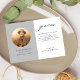 Ett hjärtligt tack till vårt spanska begravningskort, Gracias Oval, tack. Det här högtidliga men ändå lugnande kortet har ett omhuldat ovalt foto av din älskade, elegant inramat mot en serene grått-bakgrund. "Gracias", skrivet delicerat i svart kalligrafi, lägger till högerna, vilket tyder på uppskattning på spanska. Anpassa kortet med ett tackmeddelande från personligen, som erbjuder både solidaritet och tacksamhet.