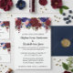 Denna akvarell i marinblått och vinrött med blomsterinspirerad bröllopsdesign kan anpassas med din information. Den kan anpassas ytterligare genom att välja "klicka för att anpassa ytterligare" alternativet. Du kan ändra textens färg och stil, vissa bakgrunder och ta bort vissa bilder. Se mina samlingar för mer av denna bröllopsserie.
