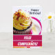 Ett lyckligt födelsedagsgratulationskort på spanska och engelska. Tarjeta de feliz cumpleaños.