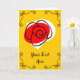 Whimsical design ritad i en retro stil med en röd ros souvenir från en spansk semester på en gyllene gul bakgrund. En anpassningsbar design i svart, vitt, rött och gult för dig att anpassa med din egen text, bilder och idéer. En originell digital konstbild.
