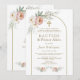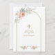 Modern vit dammtrosa akvarellblomma guld design. Den har en elegant falsk guldram, charmiga akvarell vita, dammtrosa, blommor och blad, på en vit bakgrund. Använd verktyget för att anpassa din information. För matchande artiklar, besök mina samlingar för dop och 1:a födelsedagsfirande samt spanska Bautizo-samlingen.