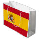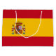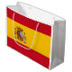 Denna utformning är utmärkande för Spaniens flagga (på spanska känd som "España"), officiellt känd som Konungariket Spanien (på spanska, "Reino de España"), som är ett land i Sydeuropa med några fickor av territorium över Gibraltarsundet och Atlanten. Dess europeiska kontinentalterritorium ligger på den iberiska Peninsulan. Dessutom gör de afrikanska enklaverna Ceuta, Melilla och Peñón de Vélez de la Gomera Spanien till det enda europeiska land som har ett fysiskt gräns med ett afrikanskt land, i detta fodral Marocko. Land fastland gränsar till södra och öster via Medelhavet utom en liten landgräns till Gibraltar, till norra och nordöstra delen av Frankrike, Andorra och Biscayabukten samt till väster och nordvästra Portugal respektive Atlanten. Huvudstaden och den största staden i Spanien är Madrid. I Spanien finns bland annat Barcelona, Valencia, Sevilla (Sevilla), Zaragoza, Málaga, Murcia, Palma, Las Palmas, Bilbao, Alicante, Córdoba, Valladolid, Vigo, Gijón (Xixón), L'Hospitalet de Llobregat, Vitoria-Gasteiz, A Coruña. Elche och Granada.