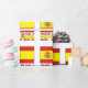 Den spanska flaggan är gul och röd, med röda ränder upptill och nedtill. Förskjuten från mitten, mot vänster, finns det spanska statsvapnet. Visas här har flaggan ordet SPANIEN undertill, i flaggsfärgerna. Dela din härkomst med detta presentpapper.