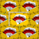 Vitaktig design som ritas i en stil med en lacy fläkt souvenir från en spansk helgdag. Ett anpassade med svart, vit, röd och gyllene gult som du kan anpassa med din egen text, bilder och dina idéer. En originalbild av digital konst.