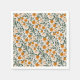 Ett upprepat mönster av Valencias orangar, blommar, grenar och löv mot en mjuk bakgrund.