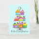 Feliz Cumpleaños. Spanska Grattis på födelsedagen-kortet. En ursprunglig vattenfärgsmålning i hand plockade. Det här kortet finns även på vissa andra icke-engelska språk
