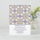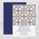 Denna Medelhavet Inspirerad Bröllopsinbjudan har en flådig och stilren traditionell spansk klinkerrand i gult och marinblått.