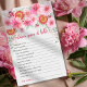 Förbättra din babydusch med vårt charmerande "Önskemål för Baby"-spelkort, designat för att komplettera ditt firande-tema perfekt. Med en elegant som är utformad för rosa ros, peonier och dahlias, sammanflätad med mjuk grönt eukalyptus foliage och känsliga rosa buds, tillför dessa kort en skönhet till evenemanget. Blodskikt med rosa och orange i orangen är delikat inkorporerade i blommigtens motiv och tillför ett unikt och vackert fläkt. Gästerna kan skriva önskemål och råd till de nya föräldrar som ska vara med på dessa spanska spelkort, och skapa omhuldade nyckelfrågor för babyens framtid. Perfekt för varje barndusch, brunch, luncheon eller sprinkle, dessa kort uppmuntrar gästerna att sina välsignelser på ett tänkbart och meningsfullt sätt. Gör din babydusch minnesvärd med dessa vackert designade jaktkort "Önskemål för Baby" på spanska som återspeglar glädjen och förväntningen att välkomna din nyaste familjemedlem.