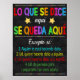 DET SOM NI SÄGER HÄR I STAYS HÄR - Spansk version A poster en spansk underbar att hänga i ett skolrådgivningskontor, barnterapeut eller barnpsykolog för att påminna barn om att de är säkra och fria att tala öppet. Konfidentialitet poster också stater att man måste tala om för någon om det finns fara än någon annan. En väldigt söt poster att dekorera konsultkontoret med! Den har en faux chalkboard-design och en glad färg.