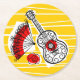 Kvismisk formgivning dragen i en stil med souvenirer från en spansk helgdag, en färgad guitar från järn, lacy fläkt och röd ros. Ett anpassade i svart, vit, röd och gyllene gult som du kan anpassa med egen text, bilder och egna idéer. En originalbild av digitala konster.
