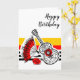 Kvismisk design som ritas i en stil med souvenirer från en spansk helgdag, en färgad guitar från järn, lacy fläkt och röd ros på en strimlad bakgrund. Ett anpassade i svart, vit, röd och gyllene gult som du kan anpassa med egen text, bilder och egna idéer. En originalbild av digitala konster.