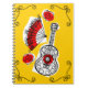 Kvismisk formgivning dragen i en stil med souvenirer från en spansk helgdag, en färgad guitar från järn, lacy fläkt och röd ros. Ett anpassade i svart, vit, röd och gyllene gult som du kan anpassa med egen text, bilder och egna idéer. En originalbild av digitala konster.