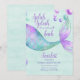 Sjöjungfru Bash-födelsedagsinbjudan med söt sjöjungfru under havstemat. Utformningen har en sjöjungfruar svan och havsbubblor i vattenfärgsskuggor av lila mynta grönt och turkos och har titeln "Split stänk it's a sjöjungfru bash". Lätt att redigera för alla ålders flickors födelsedagsfest eller sommartid bassäng party och perfekt för sjöjungfru, giroprinsessa och under havsteman.