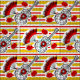 Kvismisk design som ritats i en stil med souvenirer från en spansk helgdag, en färgad guitar från järn, lacy fläkt och röd ros, på en dekorativ, strimlad bakgrund. Ett anpassade i svart, vit, röd och gyllene gult som du kan anpassa med egen text, bilder och egna idéer. En originalbild av digitala konster.