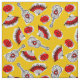 Nyckfull design som dras i en retro stil som presenterar souvenir från en spansk helgdag; en wrought järngitarr, en lacy fläkt och en röd ros. En anpassadedesign i för vit, röd och guld- gult för svart, för att dig ska personifiera med dina egna text, bilder och idéer. En original- digital konst avbildar.