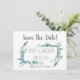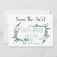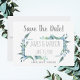 Anpassadet Spara datum meddelande har en blå blommigt i det moderna ram med fält i det moderna typsnitt.