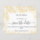 En modern och elegant Spara datum för ett bröllop. En vit bakgrund dekorerad med faux guld glitter. sparkles. Anpassa och lägg till ett datum och namn. Texten: Spara datumet skrivs med ett stort trendig-handskript i stil.