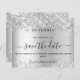 En modern och elegant Spara datum för ett bröllop. En faux silver-bakgrund som dekoreras med faux glitter. sparkles. Anpassa och lägg till ett datum och namn. Texten: Spara datumet skrivs med ett stort trendig-handskript i stil.