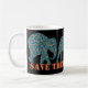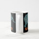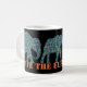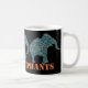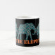 En vit keramisk kaffe Mugg i coola som ska anpassas, med en rad av Elephant silhouettes, fyllda med Mörk blått och Burgundy Paisley mönster, på en svart bakgrund som du kan ändra om du vill. Den text som visas är i Orangen Bränn och du kan också ändra teckensnittet och dess färg. Som en del av Posh & Painterly 'Heffalumps'-samlingen kan denna design justeras så att den passar vilken Mugg som helst.