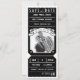 Den här vintagen inspirerade fotot biljett om du sparar datumet är ett roligt sätt att sprida nyheterna om din kommande stora dag! Ladda upp bilden och anpassa den med namnen, platsen och datumet. Visas i klassisk svart och vit.