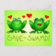 Cute tecknad grodor med röda hjärtan, övertoningsbakgrund/grönt för toning av gult. Våtmarker som svampar, våtmarker, våtmarker och fens är livsviktiga för en sund miljö. En del av intäkterna från varje "Spara the Swamp!" Produkten går till miljöutbildning och skydd av våtmarker. Besök http://www.happywishingwell.com/save-the-swamp.html för mer information och ha en hoppy dag!