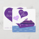 Kryssningsplan: Spara frakt vid Bröllop-datumkort, tvåsidig perfekt för par gifter sig på en kryssningsfartyg eller på öppet hav för en båt eller nautiska bröllop. Innehåller kryssare och hjärtan för frakt av lila. Enkel att anpassa på båda sidor.