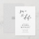 Det är vackert i enkelheten att biet i den här bröllop-svit har moderna, handskrivna skriptaccenter och en klassisk svart och vit färg-palett som lätt kan ändras till kostym. Med en nyans geometrisk bakgrund markeras baksidan av detta Spara datumkortet tillsammans med briden och rummets initialer. Sök i ID523 om du vill visa alla biet i den här eleganten.