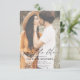 Insyn som täcker anpassningsbar- och personlig-foto på framsidan och baksidan av eleganten och moderna Spara datumbröllopsinbjudningar - innehåller vacker och elegant skripttypografi för den speciella Bröllopsdagen firande.