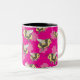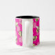 Spara bin-mugg på rosa blommig bakgrund Två-Tonad mugg