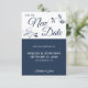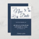 Elegant och romantisk blommigt Spara Uppskjutningskort från New Date bröllop, med en vacker och delikat prussisk blå orkidlinje teckning överst, över en klassvit bakgrund. Den nedre delen är lätt att anpassa genom att redigera fälten med namn, datum och plats i ett modernt och enkelt vitt teckensnitt med versaler över en mörk blått bakgrund. Kontakta mig gärna på acherryonthecake@hotmail.com om du vill ha mer personlig anpassning eller anpassningsbar (tillåt 1-2 arbetsdagar). Det här Spara datumkortet är en del av samlingen "Delikat Orchids - Prussian Blue bröllop Suite" med många koordinerande element för att skapa en unik bröllop-svit.