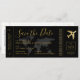 Boardingkortet Flygplan Biljett Spara datuminbjudan i chick och elegant svart och guld för ett modernt Destinationsbröllop med en romantisk logotyp och världskarta baksida och plats på baksidan för rese- och inkvarteringsinformation så att gästerna kan börja planera resa för att fira giftermål i mitten på en semester. Ett av många reseteman sparade datumen och inbjudningar skapat efter att ha arbetat direkt med kreativ och äventyrligt par som har rest runt tillsammans eller mött när de arbetat inom resebranschen. Kontakta Zazzle Designer för Pappra grafdestinationer direkt via Zazzle-chattan och få information om hur du anpassar mallen med bröllop-informationen i åtanke.