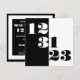 Wow dina gäster med ditt speciella bröllop-datum och det här unika Spara datumet som betonar ditt datum. Denna typografibaserade utformning sätter coolans framsida och centrum: 123123 är det sista datumet 2023. Vita och svarta och svarta mot vita siffror är slående. Den omvända sidan är vit på svart och innehåller alla viktiga detaljer. Prova pappra i silver för att se och känna extra.