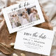 Budget Modern och Elegant liggande Vågrät tre (3) Foto Spara datum Bröllop Magnet med handskrivet skripttypografi. Datuminbjudningsmagneten innehåller skripttypografi och chic och enkel design som du kan lägga till ditt anpassade förlovning-fotografi bild till.