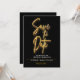 Spara datum 3d-textminimalistisk i svart och Guld Inbjudningar