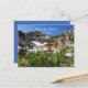 Vårt fotografi av vacker bergslandskap med en isig sjö och färgglada vilda blommor pryder denna 50-års "Spara datum"-postkortskort. Baksidan har vit text på blå bakgrund. Mycket elegant och klassisk! Du kan enkelt ändra texten för namn, evenemangstyp, datum, etc. Originalfotografi av Alan Socolik, vandrande i Nevada. Alla rättigheter reserverade © 2015 Alan & Marcia Socolik.