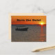 Ett foto av en silhuett av en fiskebåt vid solnedgången, med en levande orange himmel, dekorerar detta unika och roligt 70:e födelsedag "Spara datum"-meddelande. Baksidan har svart text på elfenben. Du kan enkelt ändra NAMN, ÅLDER, HÄNDELSE, DATUM osv. Originalfotografi av Marcia Socolik. Alla Höger förbehållna © 2015 Alan & Marcia Socolik.