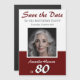 Spara datum 80-års födelsedagsfest Foto Magnet Kort med ett eget foto - lägg till ditt foto och anpassa det med din information. Kortet är mörkrött med trendig skrivstil.