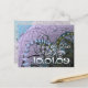 Spara datum abstrakta lila och blå hjärtan meddelande vykort