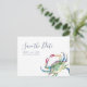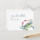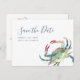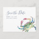 Meddela om er förlovning med dessa icke-foto "Save the Date"-bröllopsinbjudningar i vykortsformat, perfekta för ett strandbröllop i Myrtle Beach eller någon annan kustområdesfirande. Med min originella akvarellblå krabba i levande röda, blå och gröna färger, förenar denna design nautiskt charm med strandbröllopsteman. "Save the Date" är stiliserat i trendig script-typografi som härmar handskrift, medan era namn, bröllopsdatum och plats är satta i en tidlös serif-teckensnitt. Perfekt för strandbröllop, vigslar och destinationfiranden, erbjuder detta kort ett stilrent sätt att dela era spännande nyheter. Upptäck mer strandbröllopsinspiration och anpassade designer av Victoria Grigaliunas på DoTellABelle på Zazz