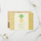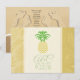 Personliga hjärtformade ananaslappar för att spara datumet, överlagrade med tropisk grönska i sandtoner. Perfekt för en tropisk strandbröllop.